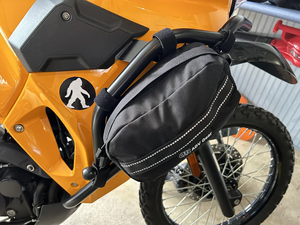 The OBR crash bar bag is very well made and reasonably priced for the quality. They fit my KLR with Tusk crash bars nicely after a little creativity with zip ties to provide an anchor point for the end straps.